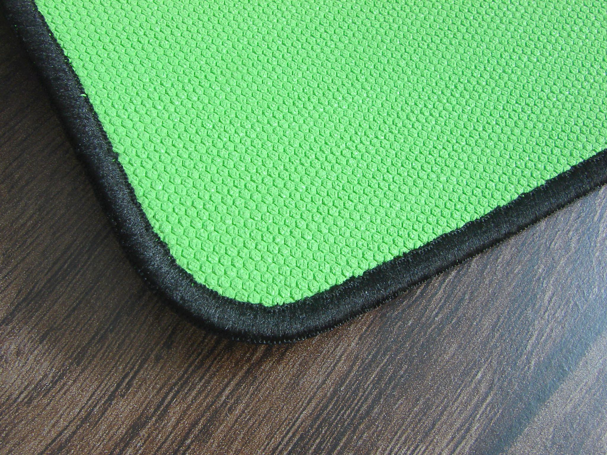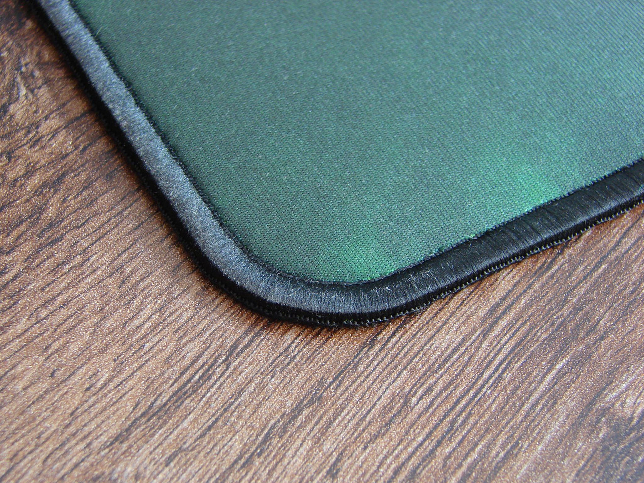 Cały spód podkładki pokryty jest gumą zielonego koloru o fakturze „plastra miodu” – dzięki czemu idealnie przylega do podłoża oraz nie ślizga się, nawet przy ekstremalnej rozgrywce.