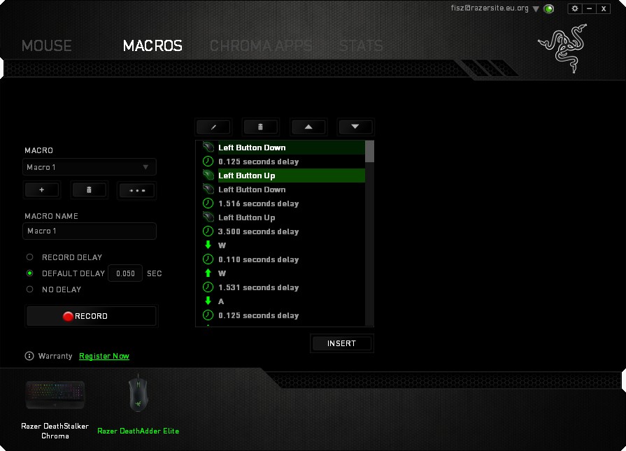 Synapse oferuje prosty, a zarazem bardzo rozbudowany panel konfiguracji makr. Sekwencje wciśniętych klawiszy można swobodnie edytować oraz wstawiać opóźnienia pomiędzy nimi.