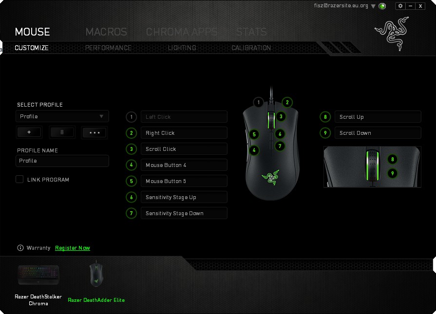 Oprogramowanie Synapse 2.0 pozwala na szybką oraz intuicyjną zmianę ustawień. Wszystkie ustawienia są zapisywane w chmurze, po zalogowaniu się do swojego konta. Niestety DeathAdder Elite nie posiada wbudowanej pamięci, przez co po podłączeniu do nowego PC’ta – bez instalacji sterowników nie będzie możliwości skorzystania z wcześniej zapisanych ustawień.